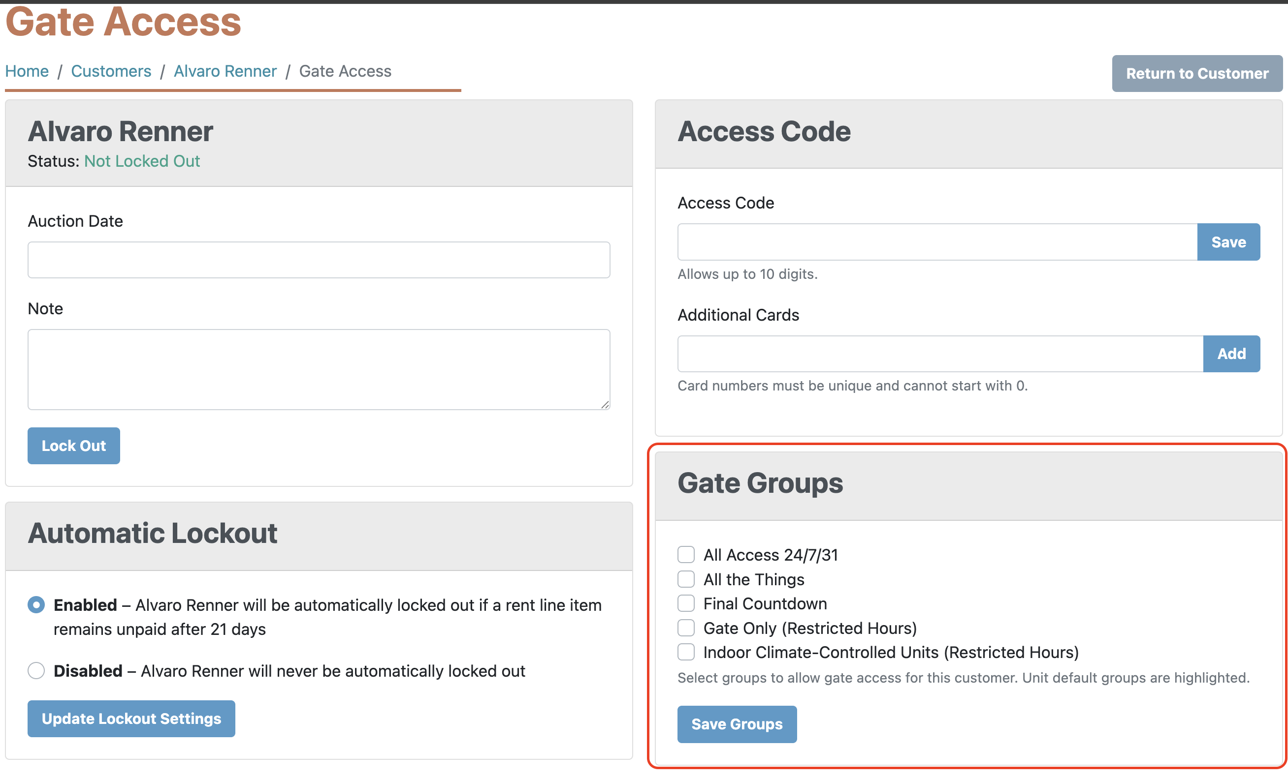 - Assign Gate Access Codes from the customer profile page