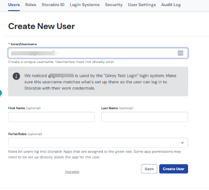3. Enter the user’s name, email, and username (the default option is the user’s email).