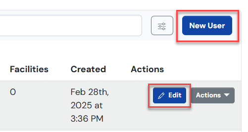 2. On the right side of the screen, click New User to create a new user or Edit next to an existing user.