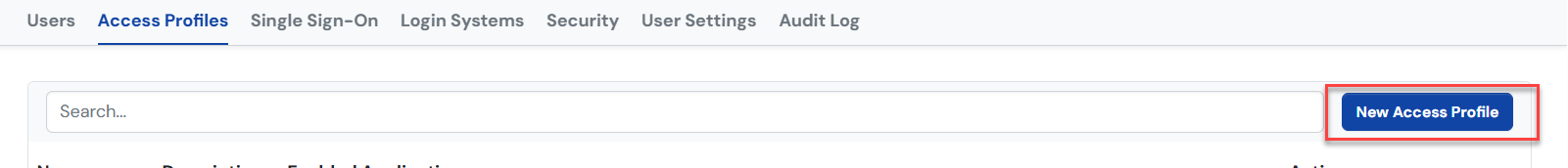 The SSO portal includes an Access Profiles tab, where you see the existing roles and create new roles for your users.