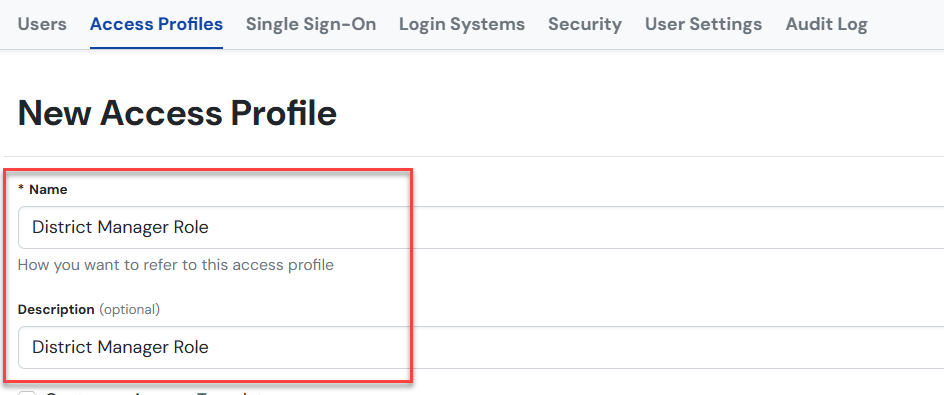 Enter the Name and Description of the new Access Profile.