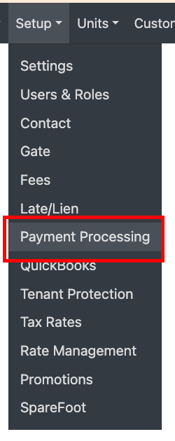 | 1. To enable Surcharging in Easy, hover over Setup and click Payment Processing. |
