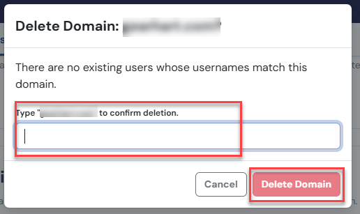 • Users deleting a login system cannot have a username that matches the verified domains for that login system..