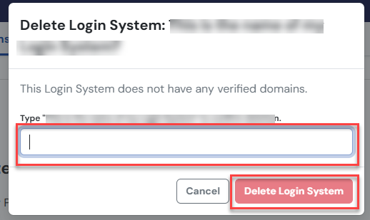 Note: When you delete a login system, users who rely on SSO will no longer be able to login or authenticate.  For that reason, we have implemented controls to prevent these risks.